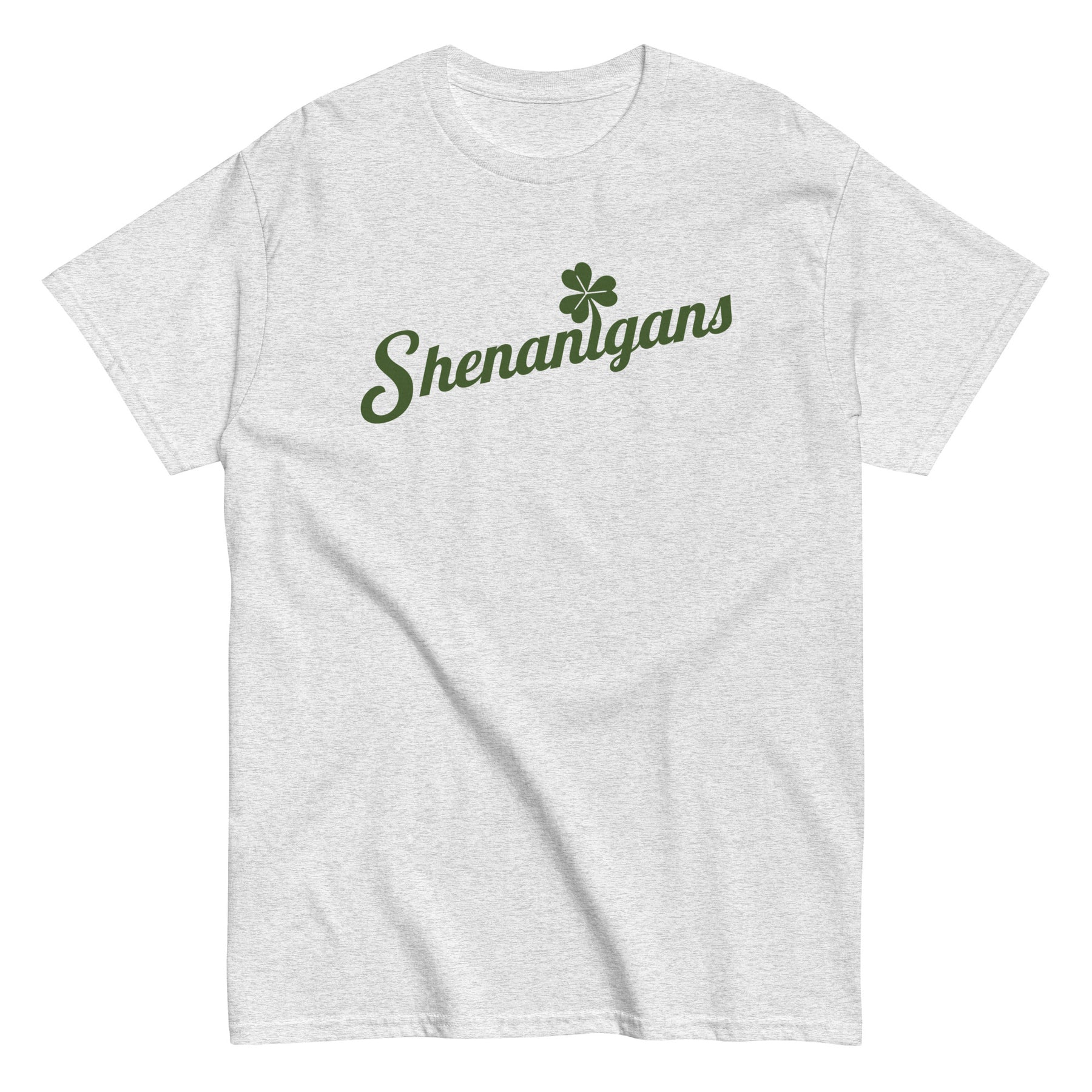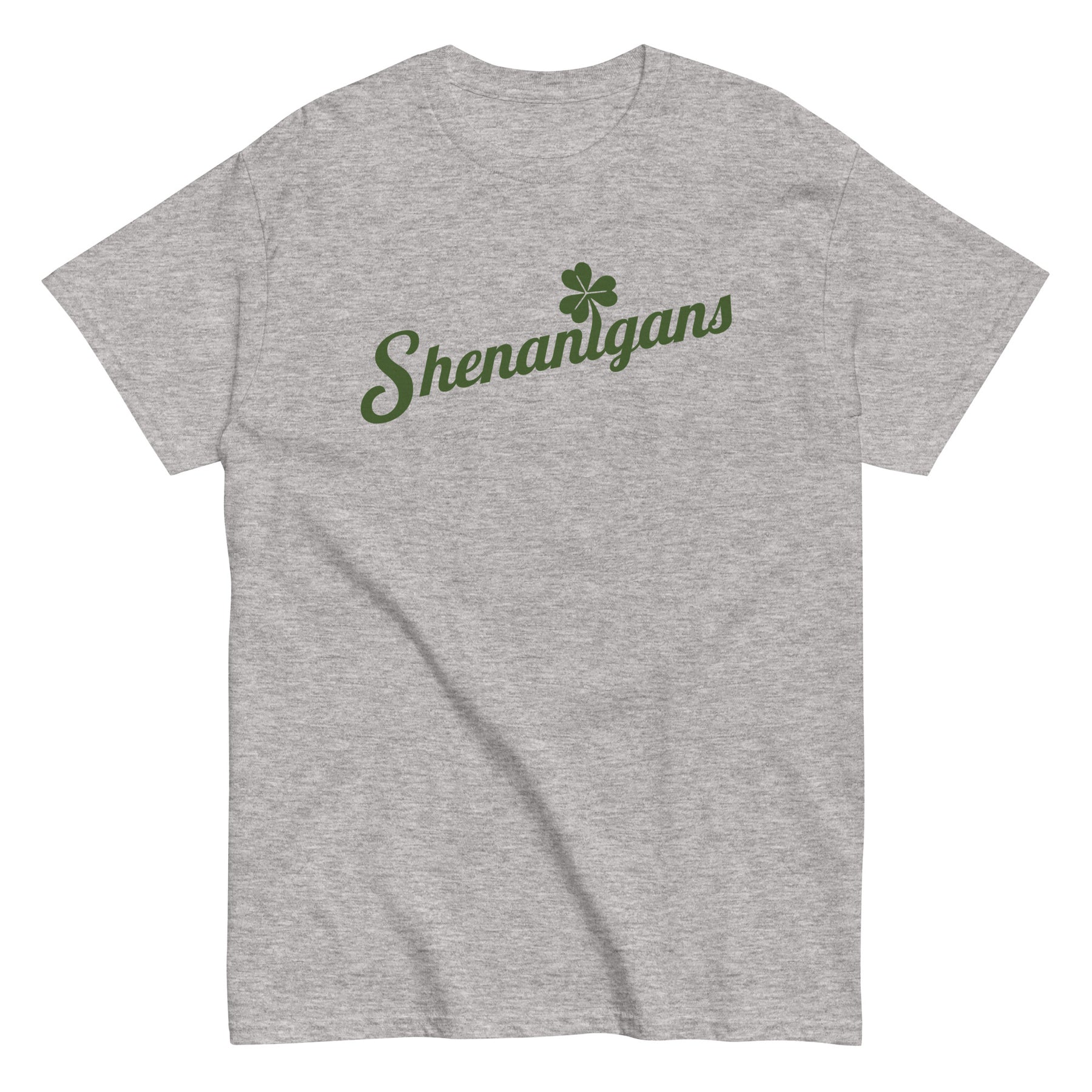 Keep the mischief classy with this “Shenanigans” t-shirt — the perfect tee for anyone who’s up for a little fun and laughter! With its bold, simple script and shamrock accent, it’s a go-to pick for St. Patrick’s Day parties, pub crawls, or any day you feel like stirring up a bit of good-natured trouble.