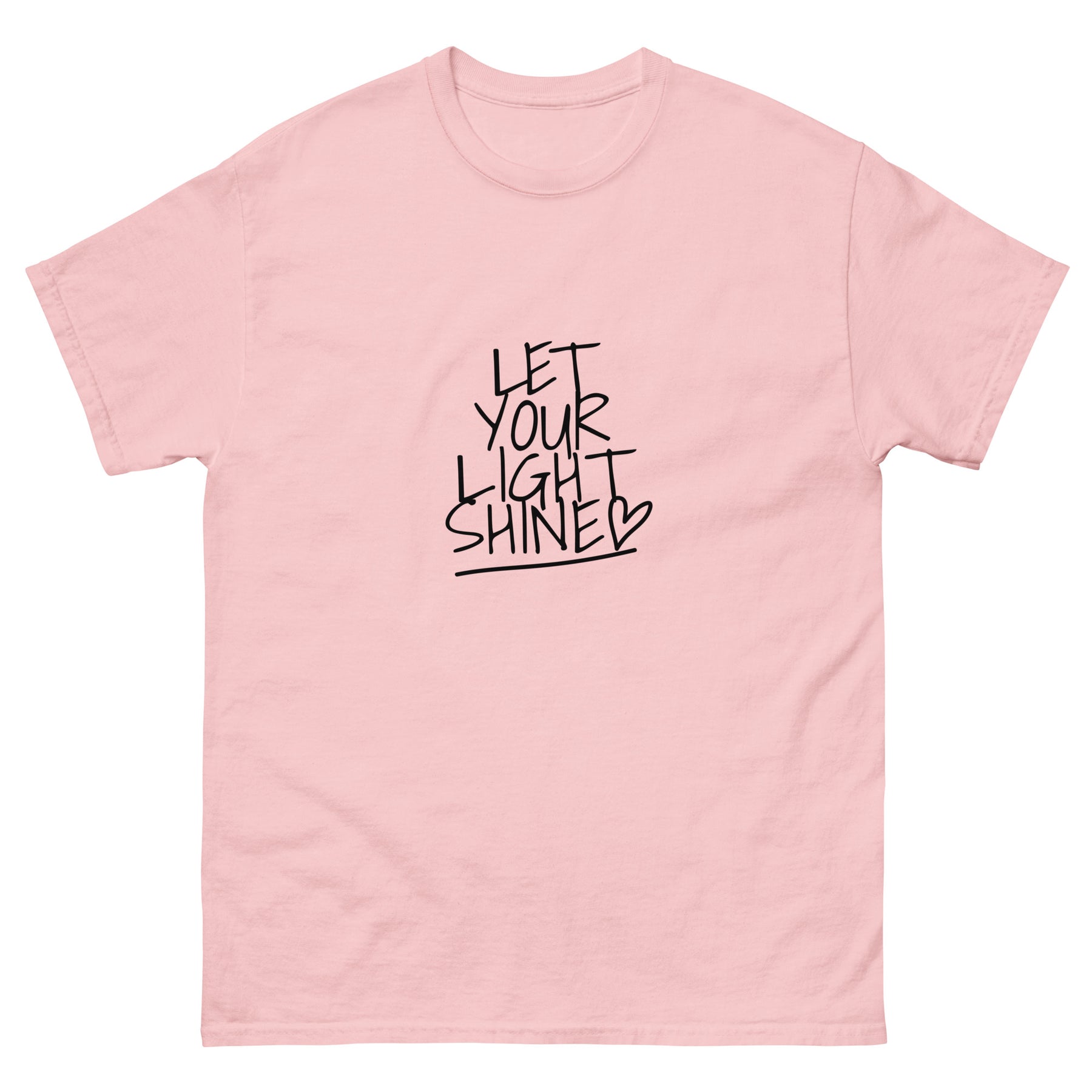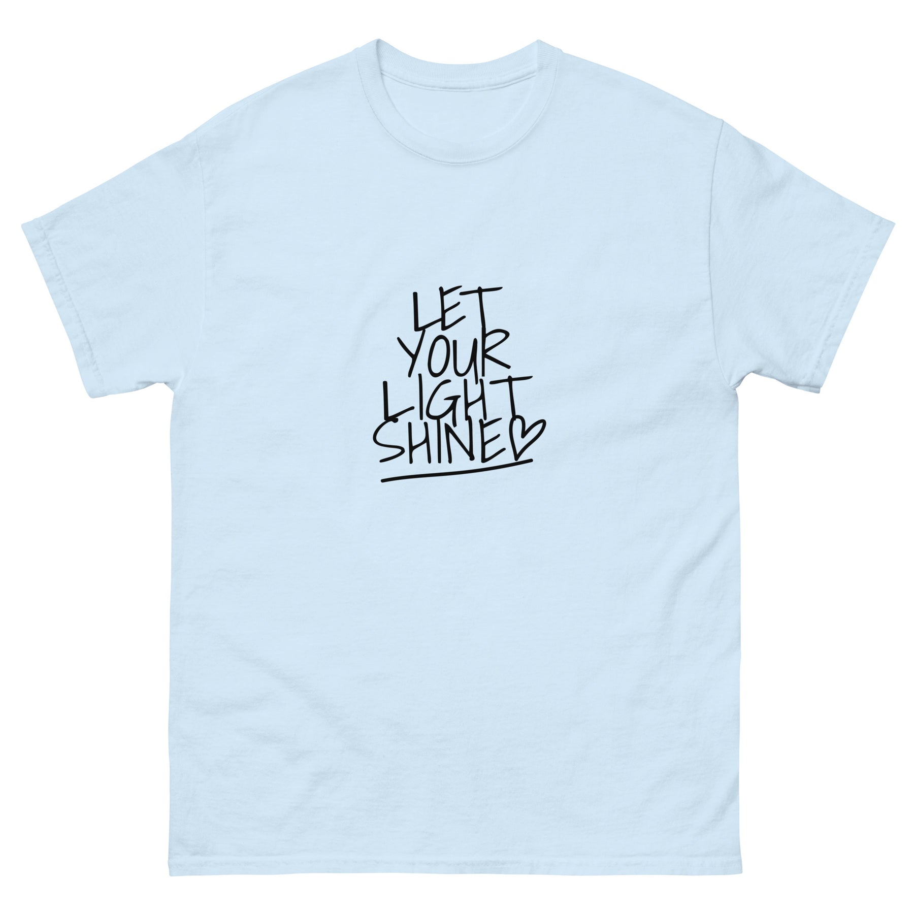 Shine bright wherever you go with this uplifting “Let Your Light Shine” tee. Designed with a bold handwritten-style front graphic, this shirt is a daily reminder to live with positivity and purpose.