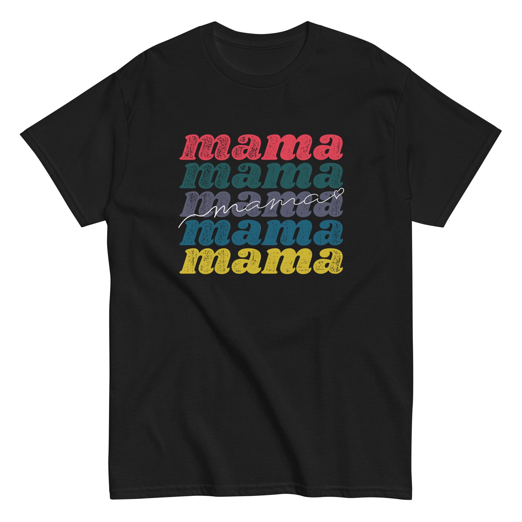 Celebrate motherhood in style with this bold and colorful retro-inspired "Mama" graphic tee. Made from durable, high-quality cotton (Gildan 5000), this classic unisex shirt is designed for everyday comfort and versatility.
