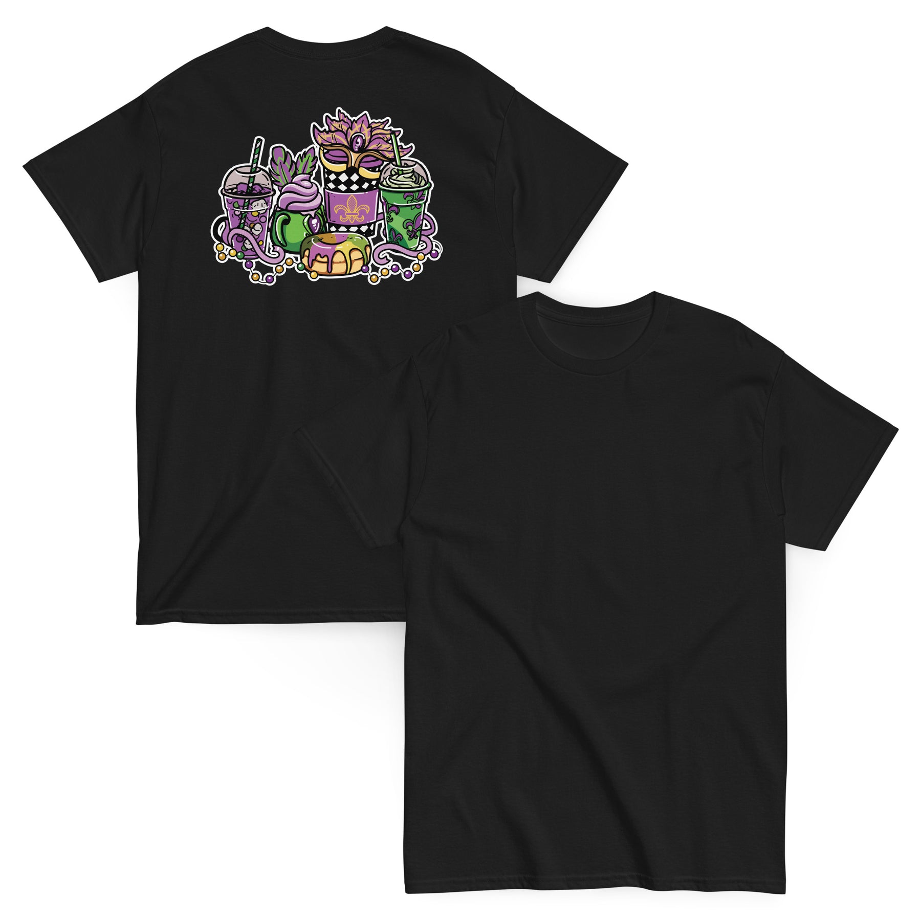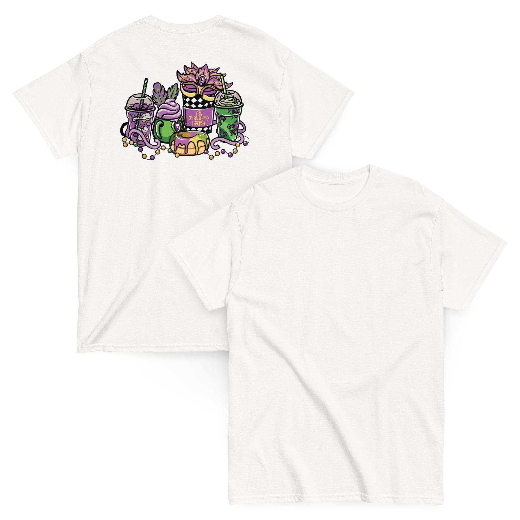 Sip, snack, and celebrate in style with the Mardi Gras Café Vibes Tee! This colorful design mixes the magic of New Orleans parades with cozy coffee-shop energy — featuring festive drinks, beads, and a sweet treat to match the carnival spirit.