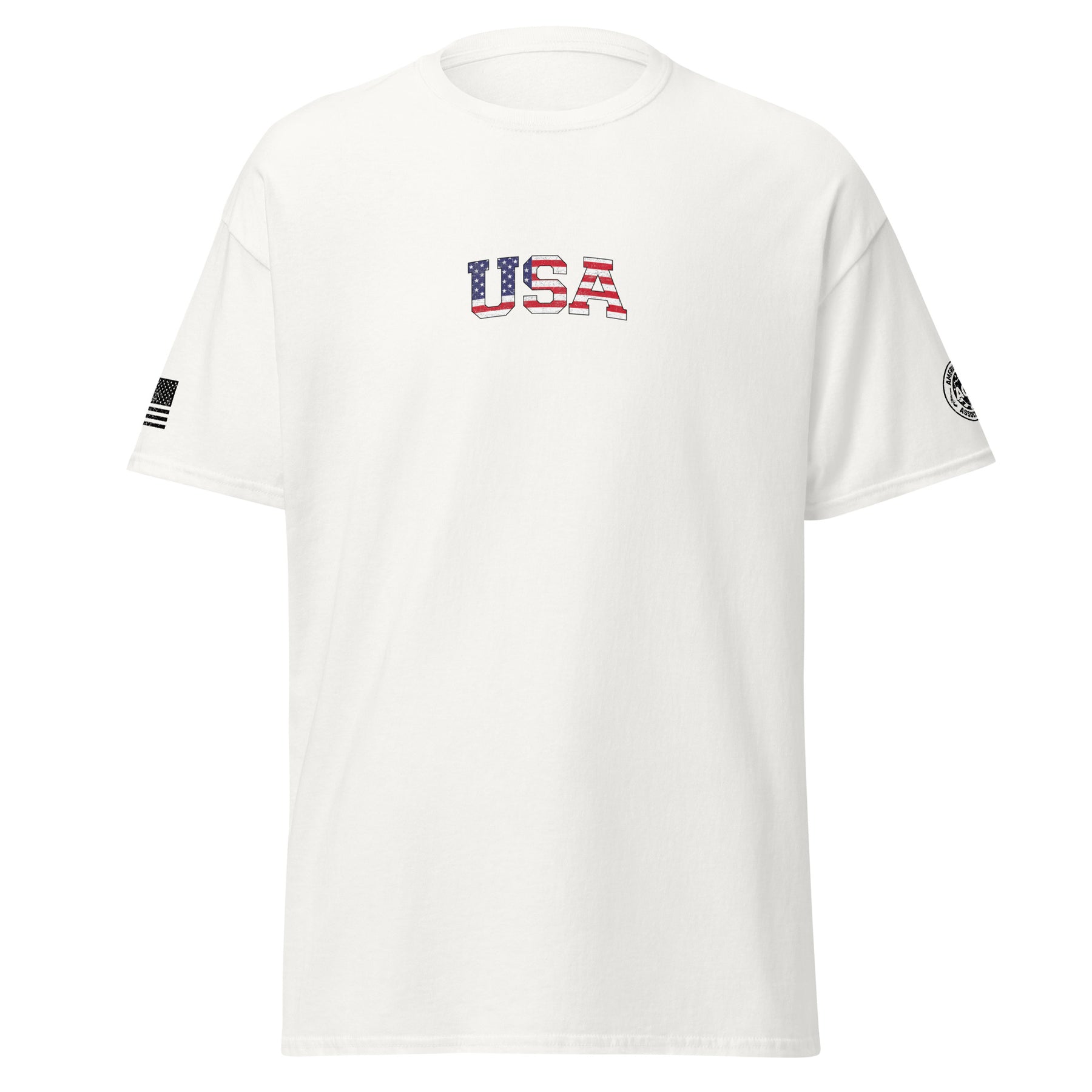 Keep it simple, bold, and patriotic with this Classic USA Flag Print Tee. Featuring a clean USA text design filled with the Stars and Stripes, this shirt celebrates national pride in a modern, minimalist way.