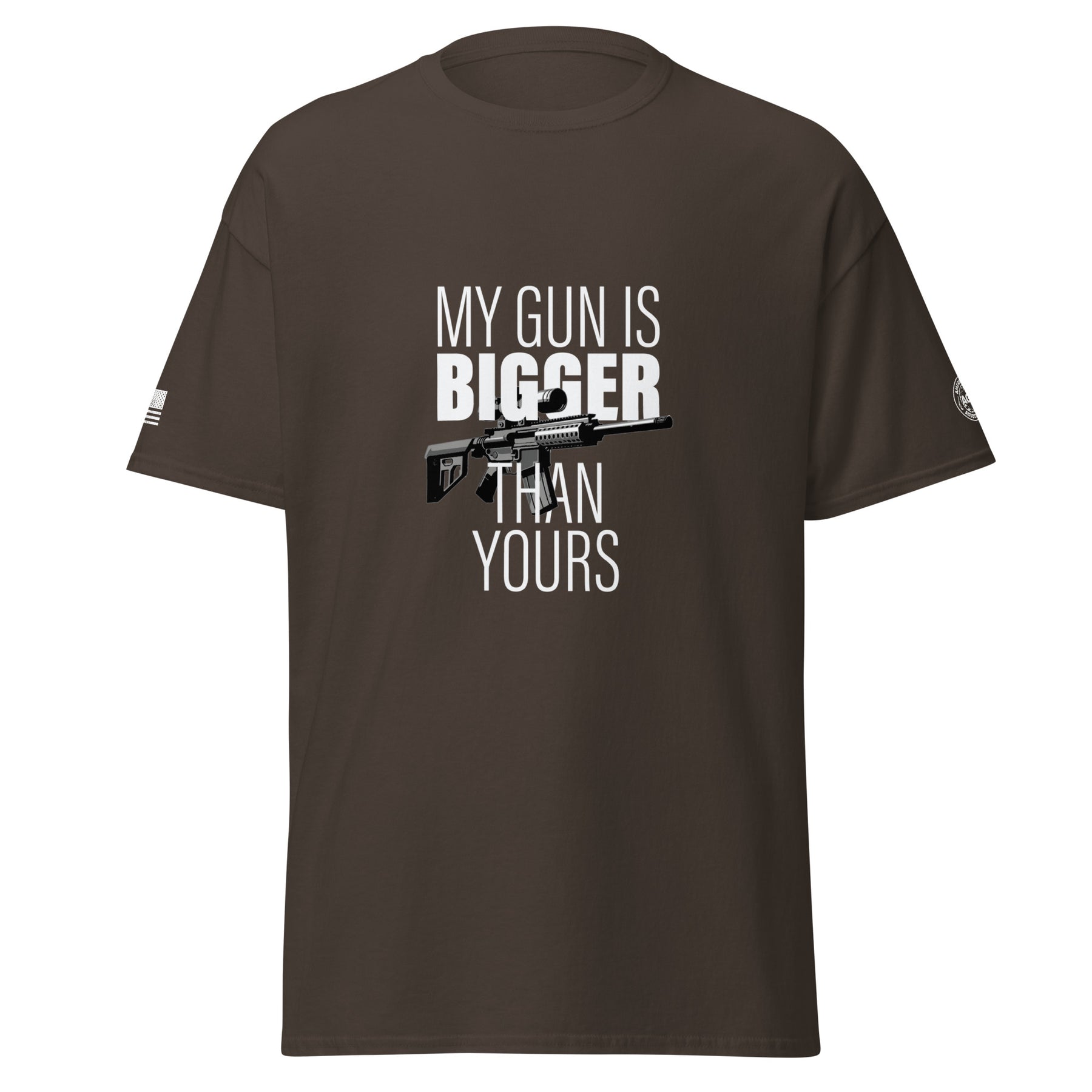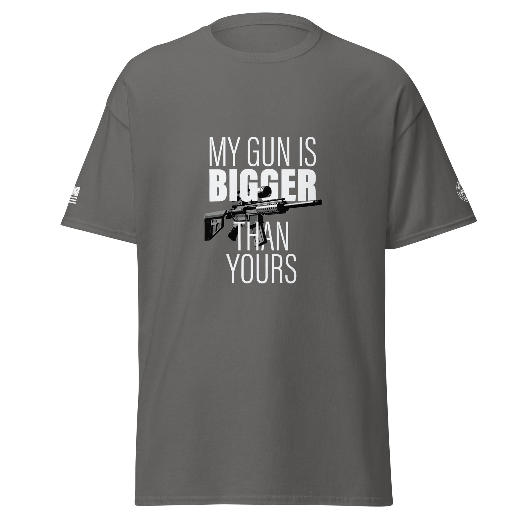 Bring a little humor and a lot of confidence with this My Gun Is Bigger Than Yours Tee. Designed for firearm enthusiasts and proud defenders of the Second Amendment, this shirt makes a statement that’s impossible to ignore.