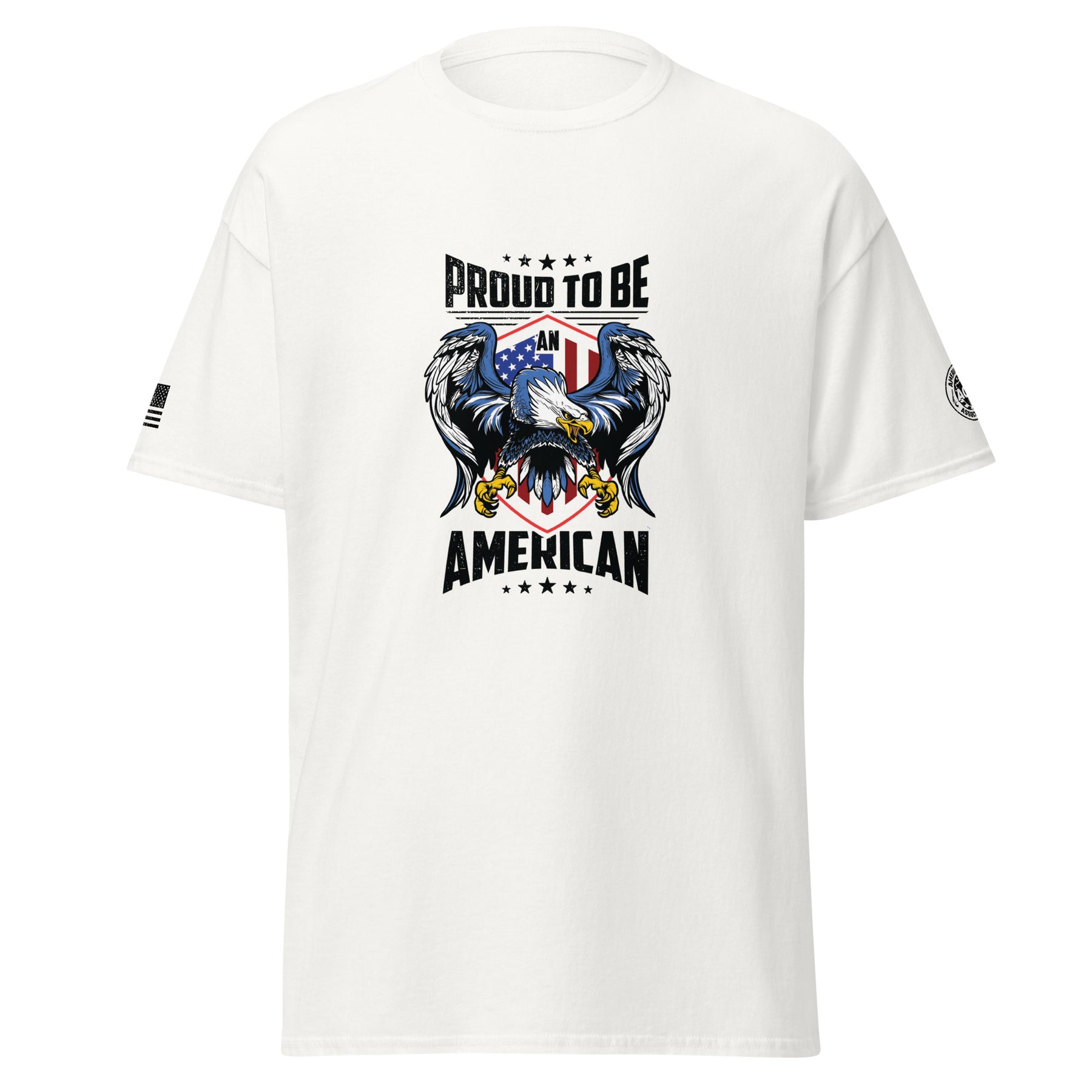 Show your American pride with this Proud to Be an American Eagle Tee, featuring a bold bald eagle design clutching the U.S. flag — a timeless symbol of strength, courage, and freedom.