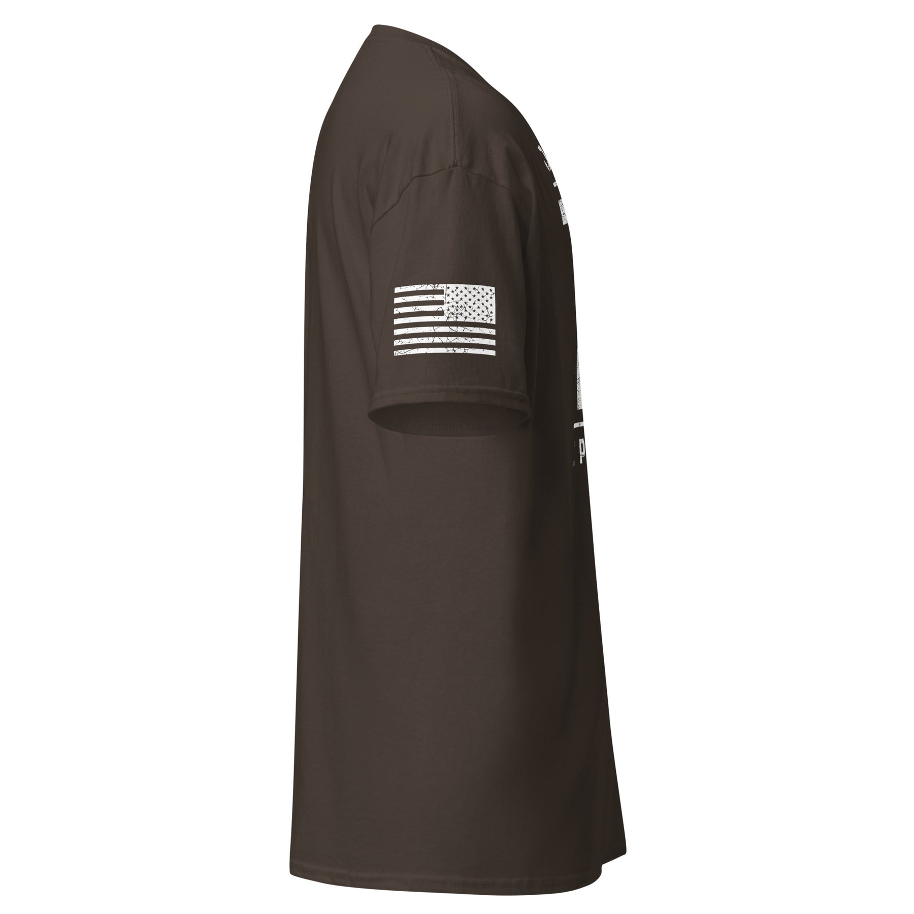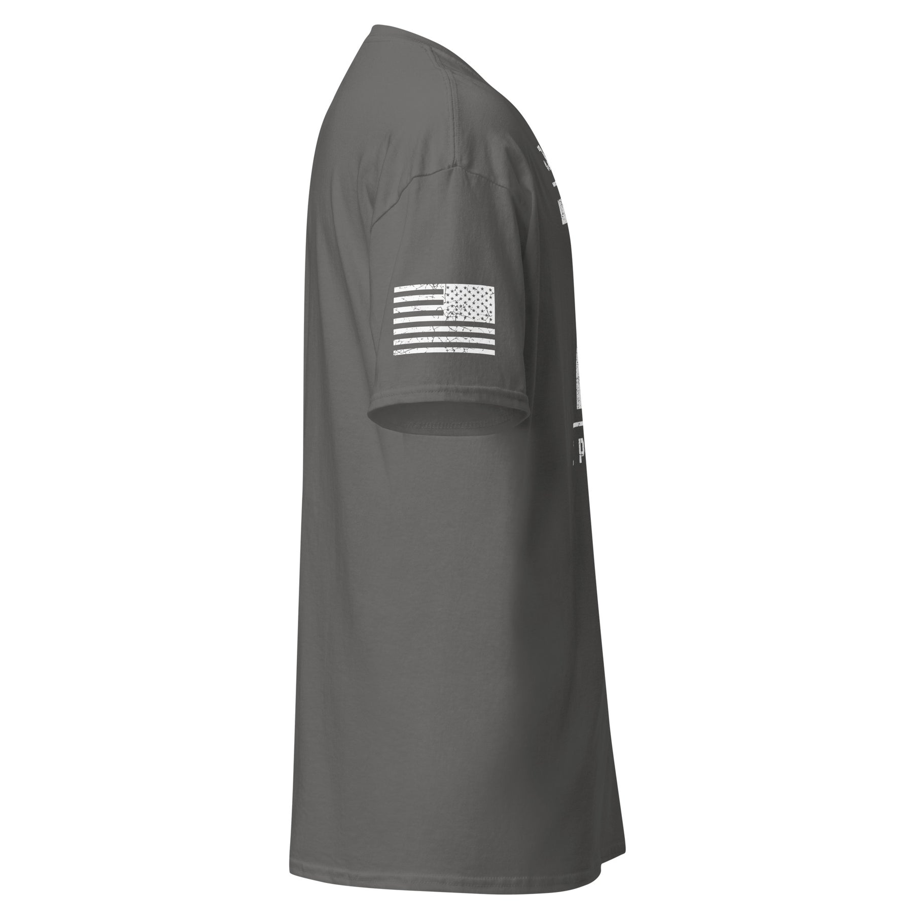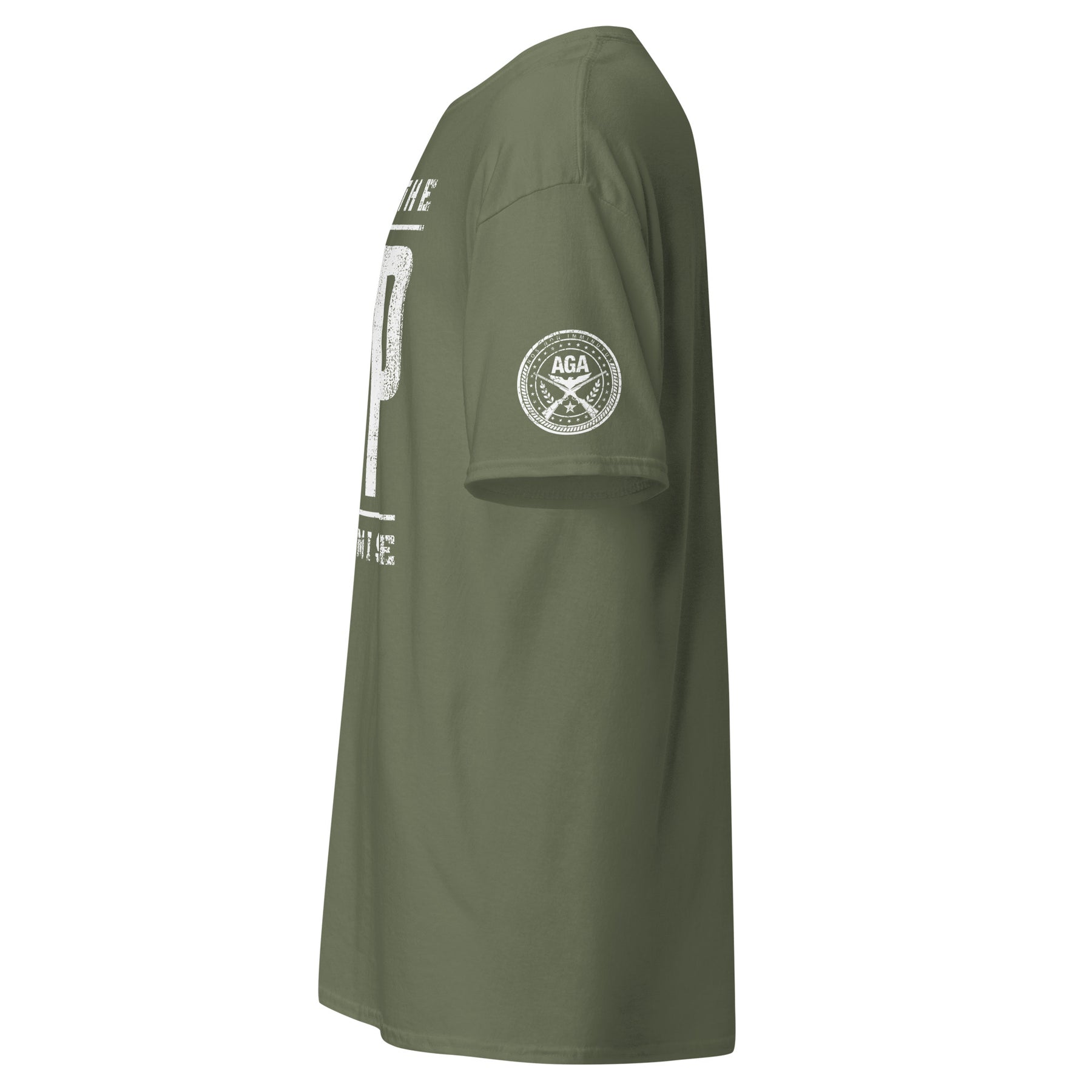 Made from 100% ring-spun cotton, it’s soft, breathable, and built to last — perfect for range days, BBQs, or casual weekends. The distressed white print adds a vintage, battle-worn edge that pairs great with jeans or cargo pants.