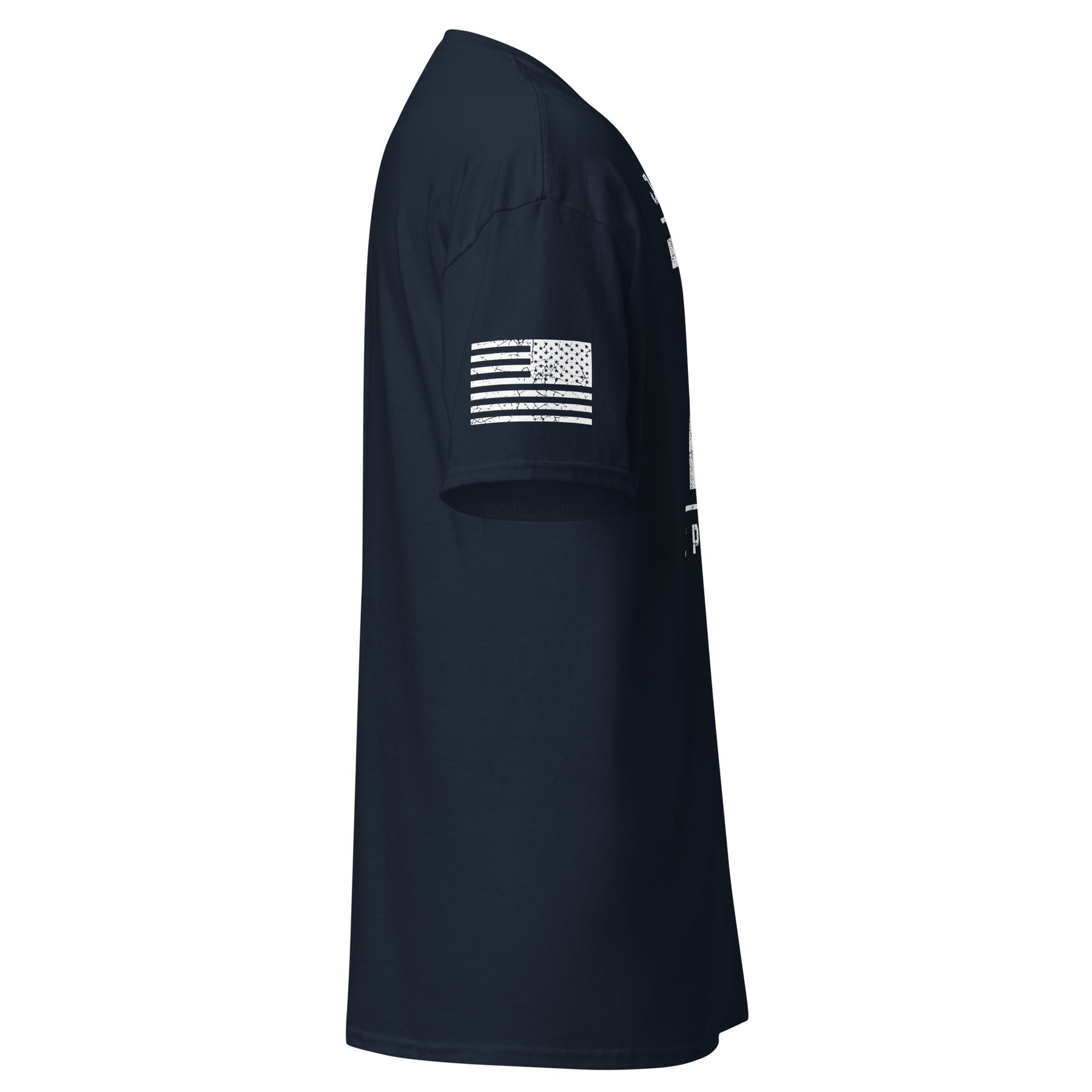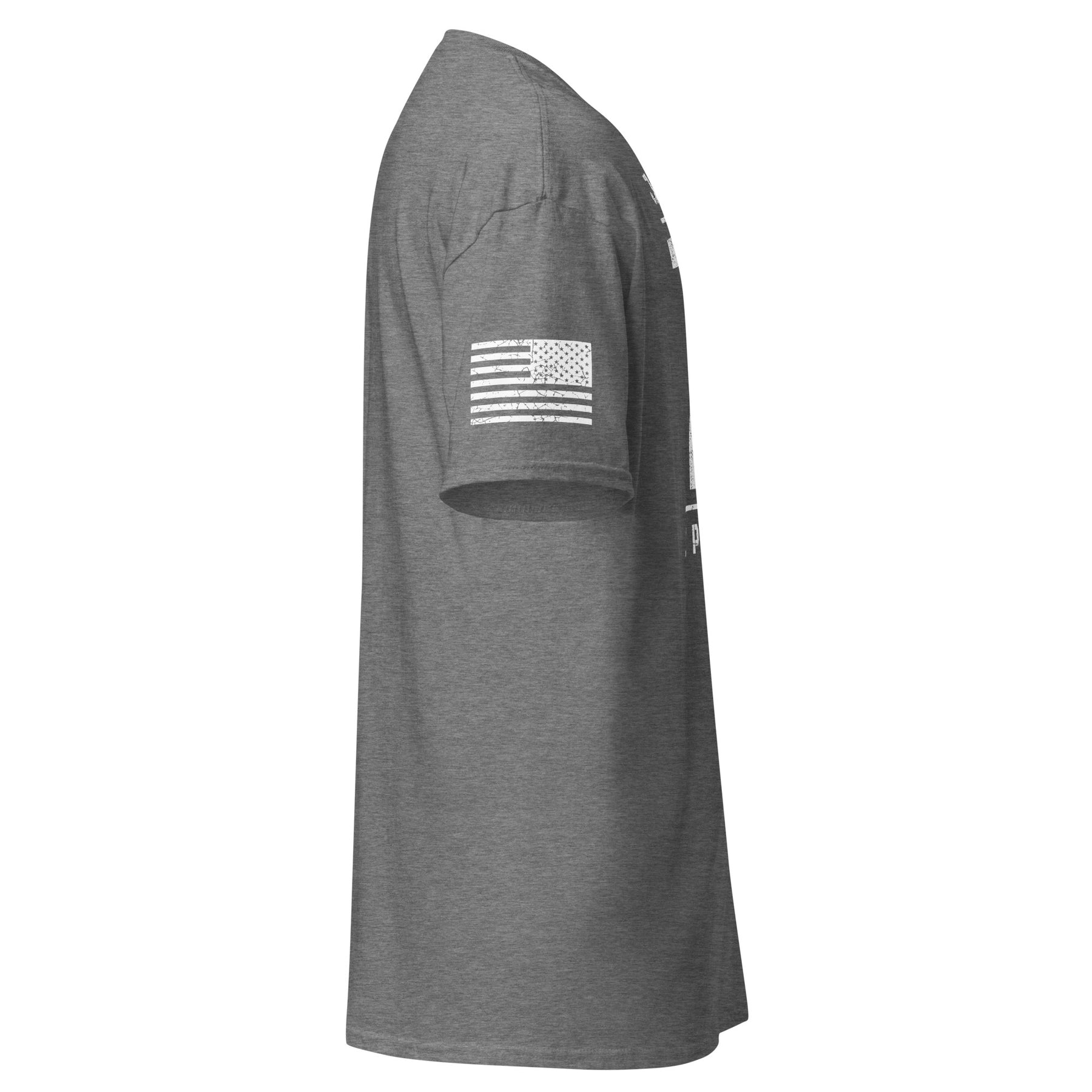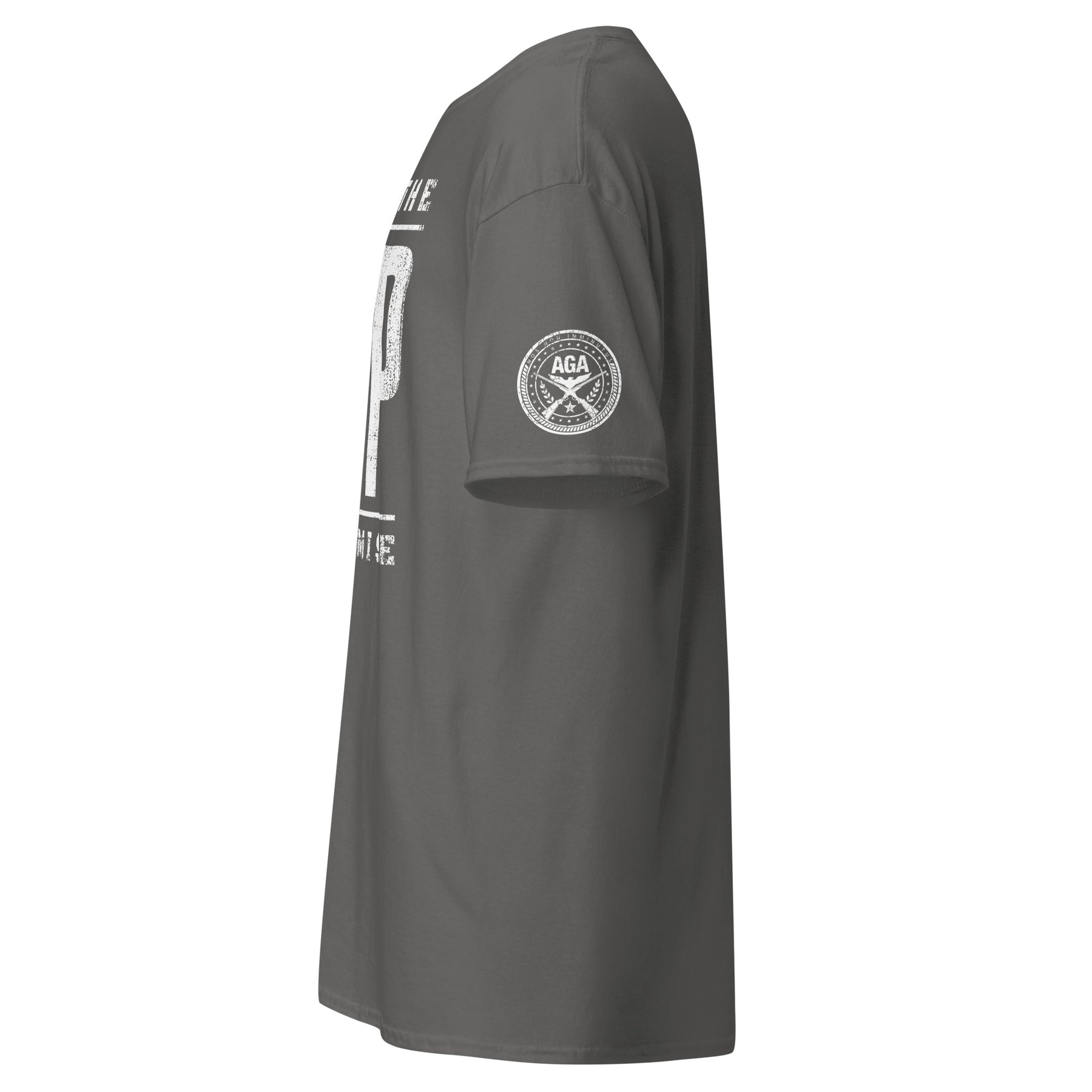 Made from 100% ring-spun cotton, it’s soft, breathable, and built to last — perfect for range days, BBQs, or casual weekends. The distressed white print adds a vintage, battle-worn edge that pairs great with jeans or cargo pants.