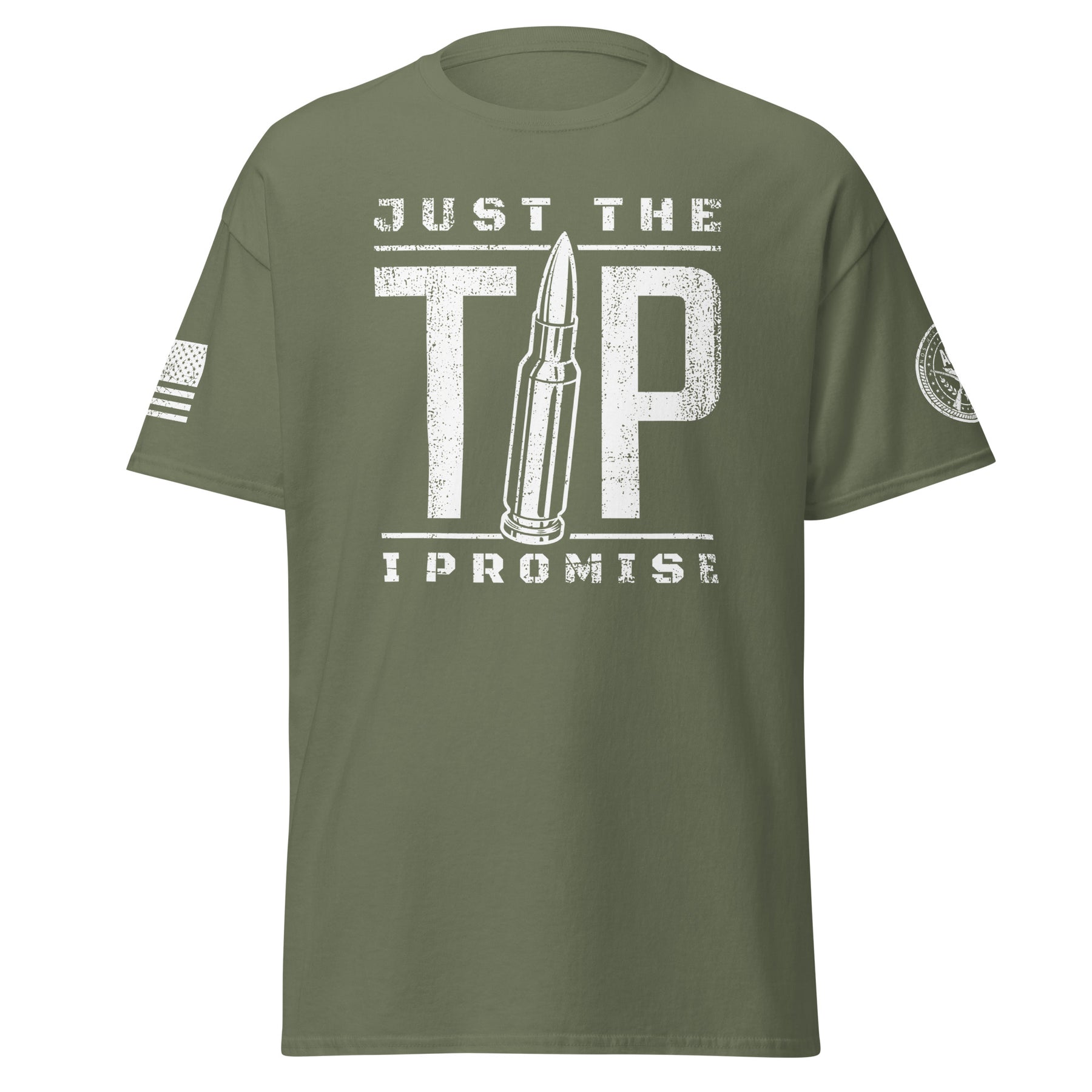 Add a touch of bold humor to your everyday wear with this “Just the Tip I Promise” Tactical Graphic Tee. Designed for those who appreciate rugged style and a good laugh, this shirt makes a statement without saying a word.