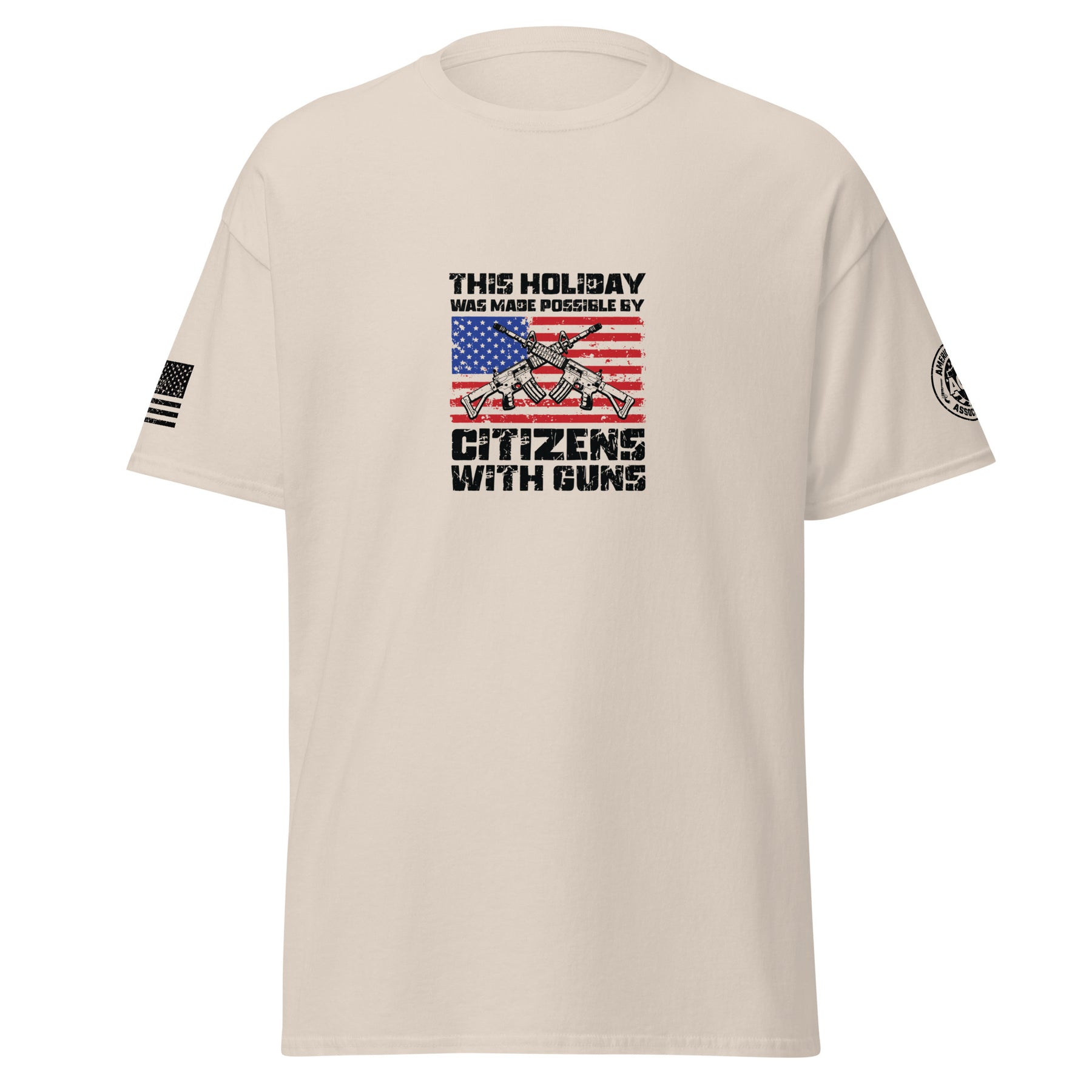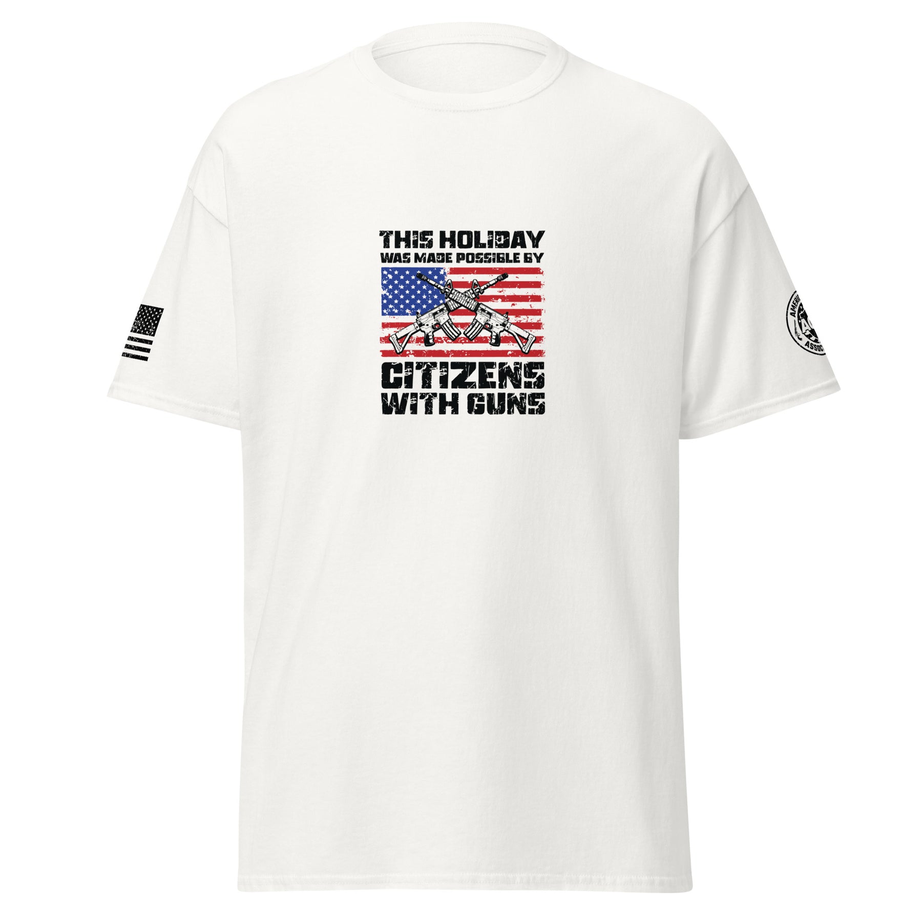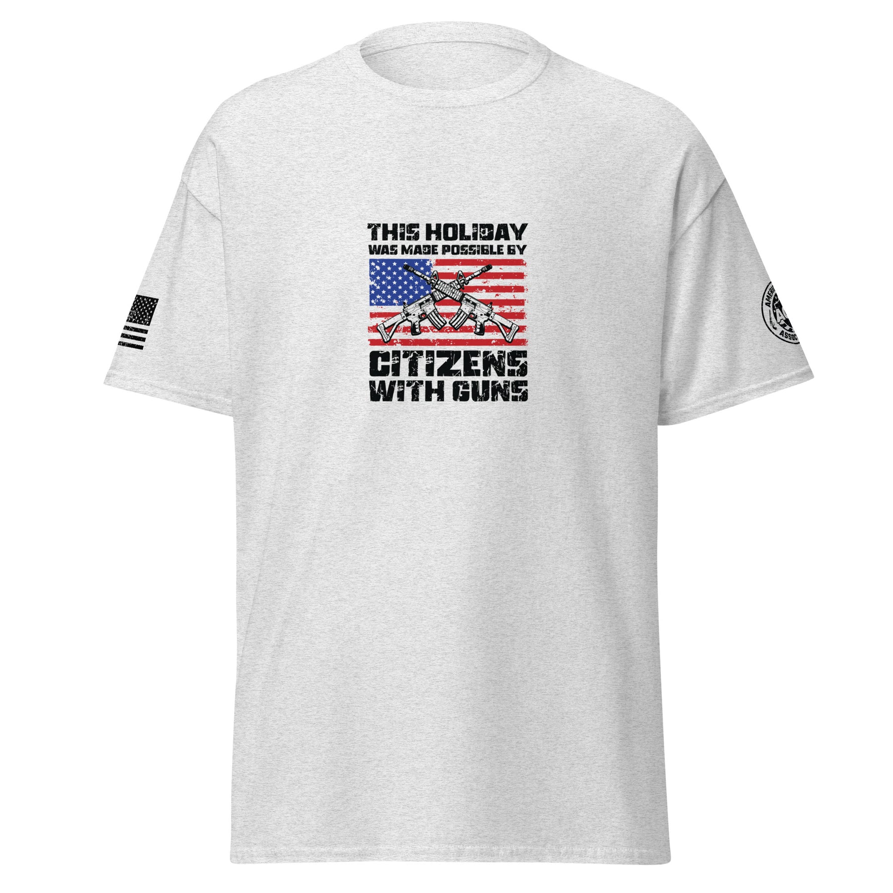 The Citizens With Guns Unisex Classic Tee pays tribute to the American spirit — bold, proud, and free. With a striking front design featuring the American flag and sleeve details that reinforce patriotic pride, this shirt is built for those who believe in liberty and the right to defend it. Made from the durable and comfortable Gildan 5000 cotton, it’s perfect for BBQs, holidays, or everyday wear.