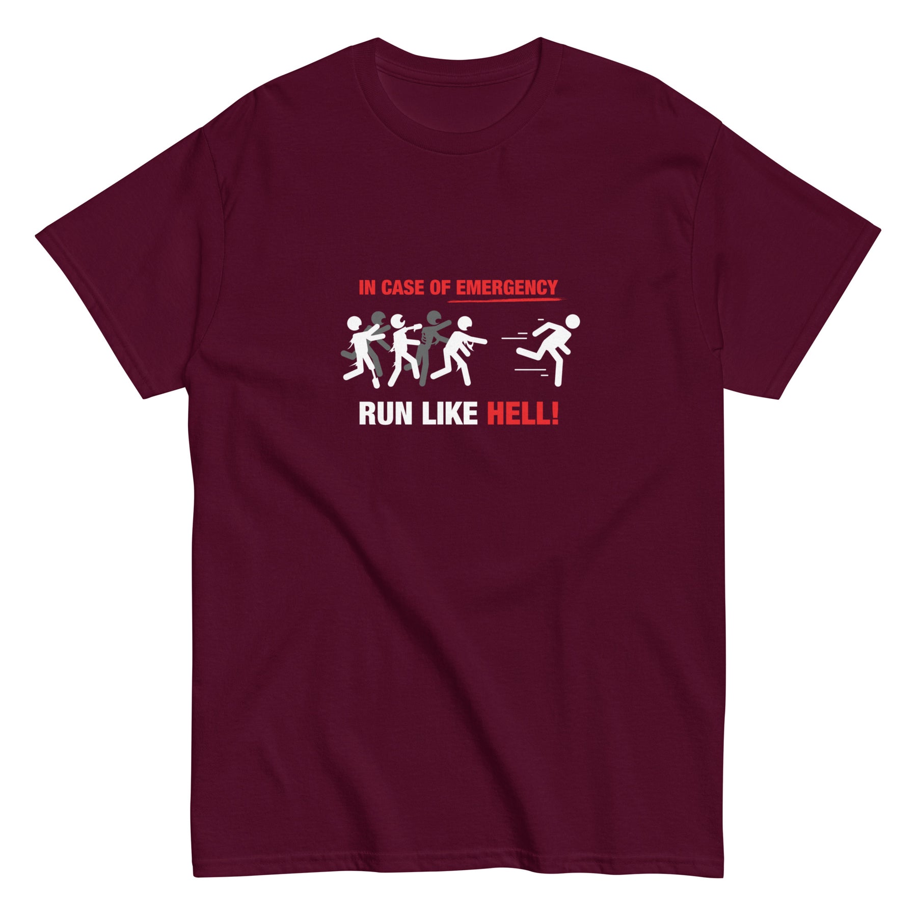 This funny emergency survival tee is made for people who take their humor as seriously as their escape routes. Whether you’re a zombie apocalypse fan or just like a good laugh, this shirt is guaranteed to get a reaction.