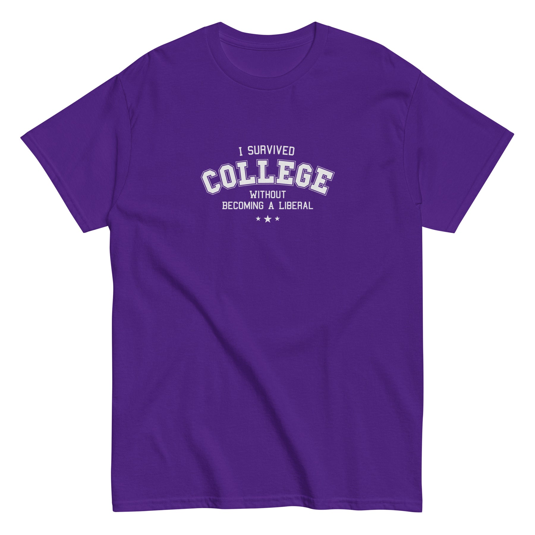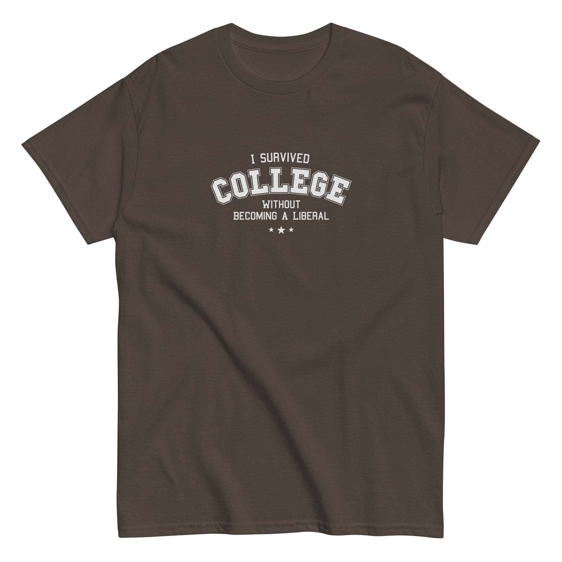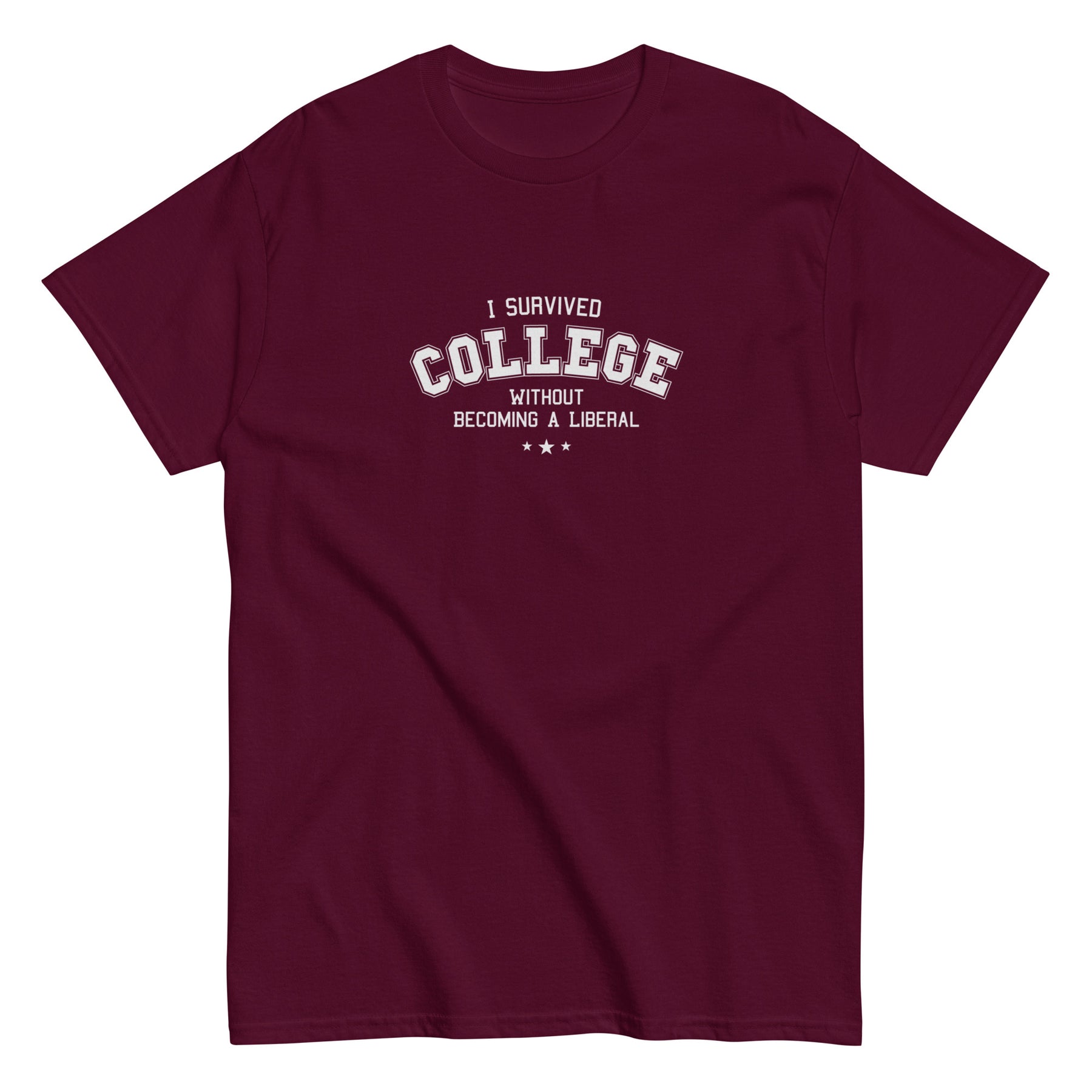 Celebrate your college “survival story” with this I Survived College Without Becoming a Liberal Tee — the perfect mix of humor, confidence, and conversation-starting style. Designed for free thinkers who like their coffee strong and their opinions stronger, this shirt says what everyone’s thinking (but few will wear out loud).